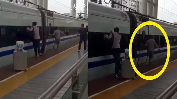 به گزارش گروه ترجمه رکنا، تصاویر دوربین های مداربسته در یکی از ایستگاه های قطار شهر جیانگسو چین مسافری را نشان می دهد که هنگام خروج از قطار انگشتش بین درهای قطار گیر می کند. او که سوار بر قطار اشتباهی شده بود، قصد داشت به سرعت از قطار خارج شود که انگشتش بین در قطار گیر می کند. او چند ثانیه همراه با قطار می دود و خوشبختانه موفق می شود تا انگشت خود را خارج کند.برای ورود به کانال تلگرام ما کلیک کنید.
