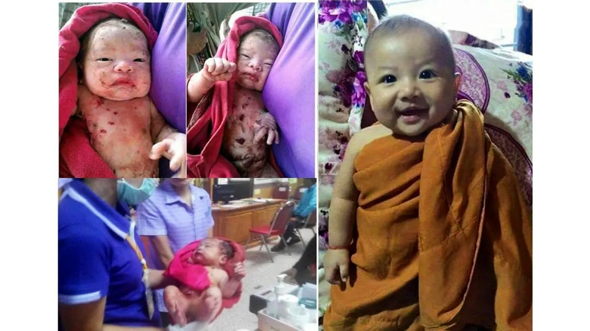 نوزاد ۷ ماهه تایلندی پس از خوردن ۱۴ ضربه چاقو از مادرش زنده به گور شد، اما ناله کردنش زنی را متوجه کرد زن او را از خاک بیرون آورد به درمانگاه برد و پس از درمان به فرزندی قبول کرد!