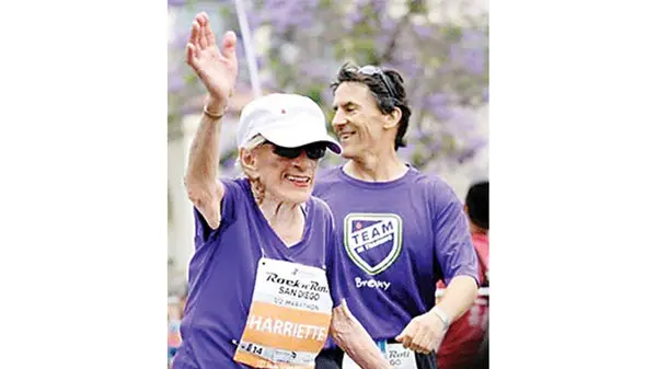 رکنا: هریت تامپسون، زنی ۹۴ساله است که بعد از جنگیدن با بیماری سرطان روز یکشنبه در دوی ماراتن سندیهگو شرکت کرد.