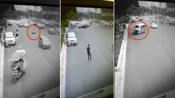 به گزارش گروه ترجمه رکنا، در این ویدئو مشاهده می کنید که در یکی از خیابان های چین یک مرد با ون یک موتورسیکلت را زیر می کند. بعد از چند ثانیه و با زمین خوردن موتورسیکلت، راننده ون به سراغ او می رود و با ضربات چاقو او را به قتل Murder می رساند. گفته می شود که علت این اتفاق علاقه مقتول به همسر راننده ون بوده است و او برای انتقام دست به چنین کاری زده است. برای ورود به کانال تلگرام ما کلیک کنید.