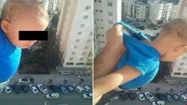 این مرد که نامی از وی برده نشده پسر کوچکش را بیرون از پنجره خانه در طبقه پانزدهم ساختمان محل زندگیاش نگه داشت و عکس گرفت. او سپس با انتشار این عکس در فیس بوک، دنبالکنندگان (فالوورهای) حساب کاربریاش را به لایک کردن تشویق کرد و نوشت: «۱۰۰۰ لایک (پسند) بدهید یا اینکه او را رها میکنم!»
