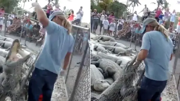 رکنا: یکی از کروکودیلهای قفس حین نمایش دست مجری برنامه را گاز گرفت.