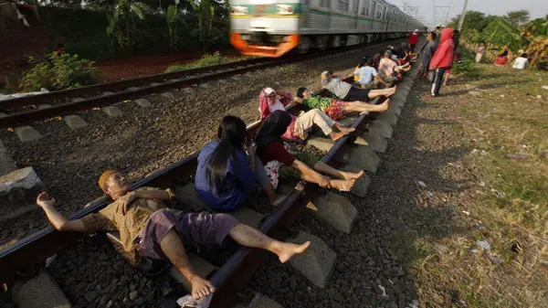 رکنا: مردم روستایی در اندونزی، بر این باورند که قرار گرفتن در میدان الکتریکی قطار هنگام عبور آن میتواند بیماریهای آنها را شفا دهد.