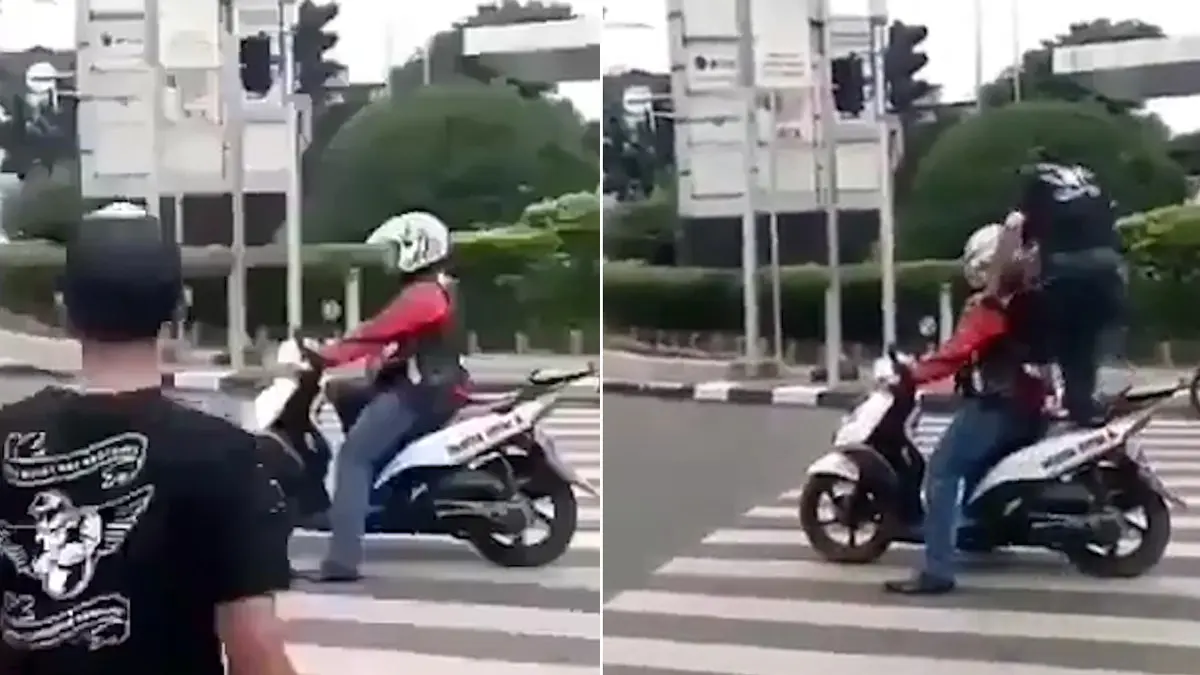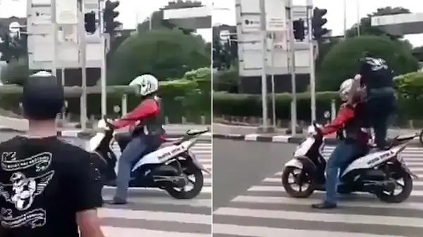 یک موتور سوار چینی که پشت چراغ قرمز بر روی خط عابر پیاده توقف کرده بود با تذکر جالب یک عابر روبه رو شد. این عابر پیاده برای اینکه به موتور سوار بفهماند که نباید بر روی خط عابر پیاده بایستد حین عبور از خیابان از روی موتور این راننده رد شد.برای ورود به کانال تلگرام ما کلیک کنید.