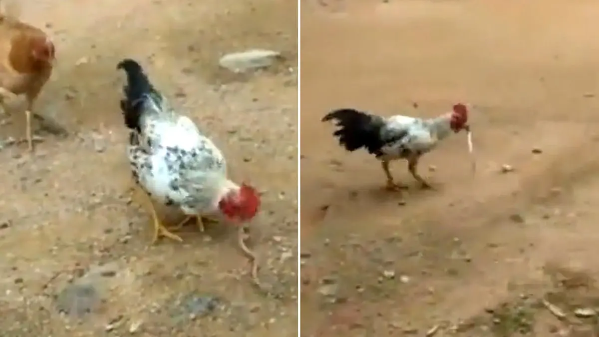 بلعیدن مار کبری توسط یک خروس! + فیلم