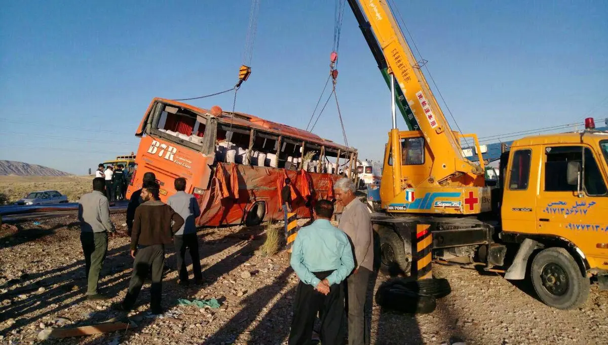 اولین تصاویر از واژگونی مرگبار اتوبوس دانش آموزان دختر در جاده شیراز / 12 کشته و 33 مجروح