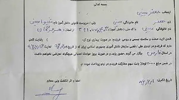 جعلی بودن رضایتنامه منتشر شده پدر دانش آموز هرمزگانی + عکس