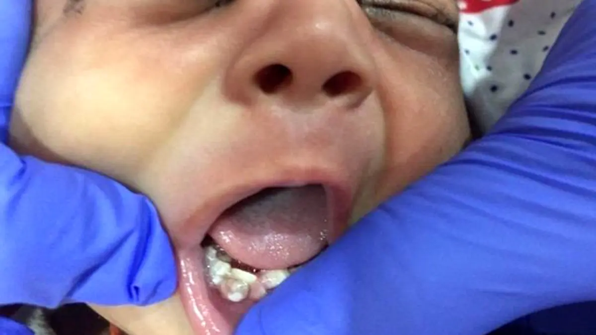 زمانی که والدین نوزاد متوجه مشکل او در شیر خوردن شدند به پزشک اطفال مراجعه کردند و پزشک با مشاهده بافت سفید رنگ در دهان وی به آنان گفت که فرزندشان را نزد دندانپزشک ببرند.