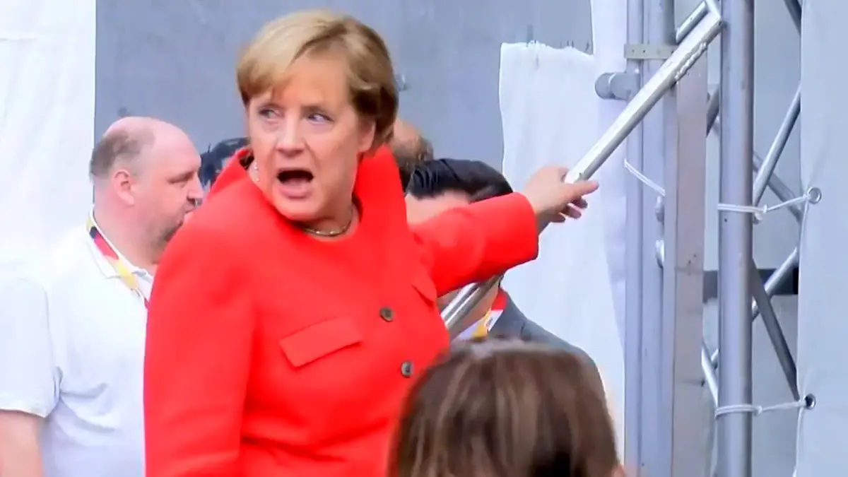 شوکه شدن مرکل پس از هدف قرار گرفتن با گوجه برای دومین بار! +فیلم