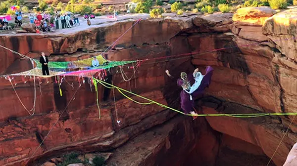 رکنا: یک زوج مراسم عروسی خود را به همراه بندبازی روی یک دره برگزار کردند.