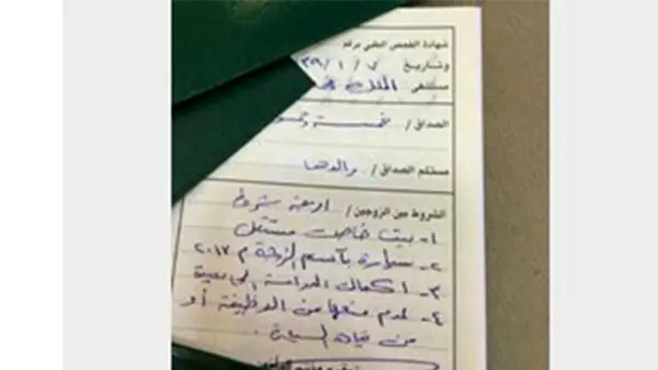 همزمان با صدور مجوز مفتی شدن زنان سعودی و جواز رانندگی آنها رسانه ها تصویر جالب از شروط جدید دختر عربستانی برای ازدواج را منتشر کردند که بازتاب گسترده در فضای مجاز ییدا کرد.