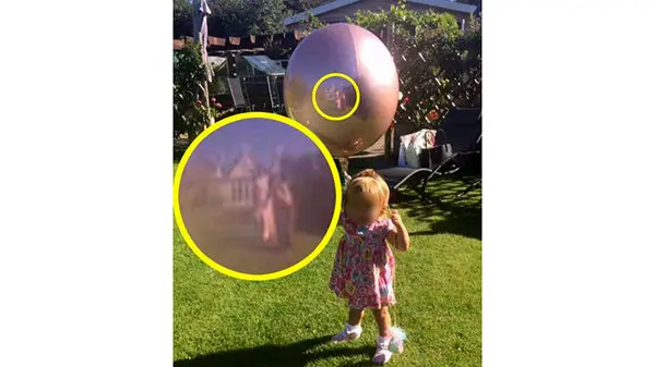 رکنا: یک زن قصد داشت از دختر خردسال خود که در مقابل یک بادکنک ایستاده بود عکس بگیرد که با دیدن یک موجود عجیب که شکل آن در بالن منعکس شده بود شوکه شد.