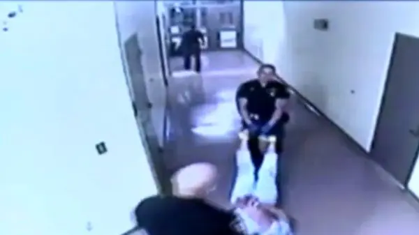 دو مامور پلیس Police آمریکایی به دلیل بدرفتاری، انتقال یک زندانی Prisoner و کشیدن او توسط پابند، از کار اخراج شدند.
