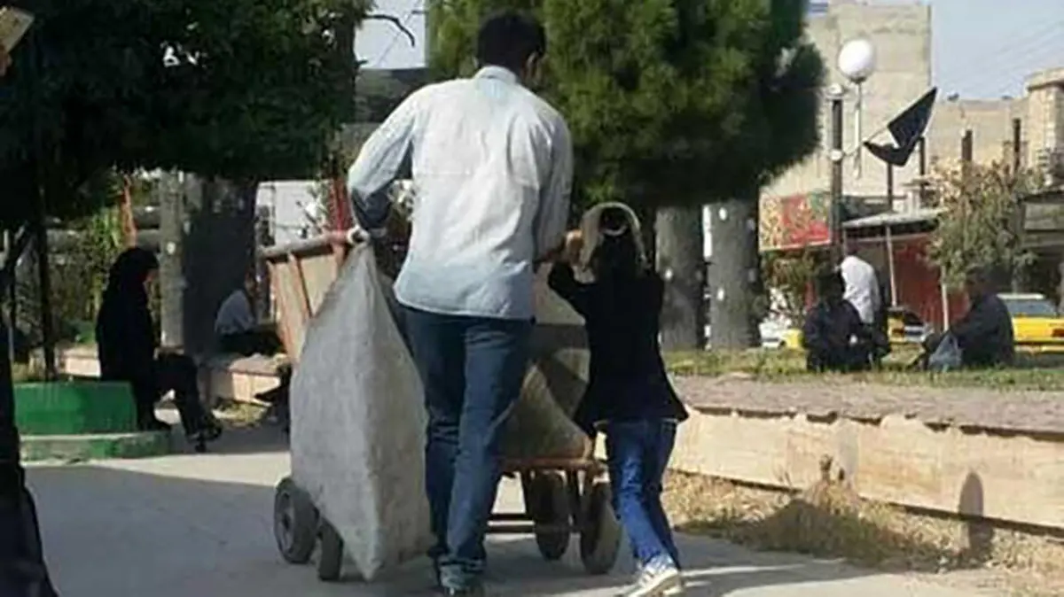 در توضیح عکس نوشته شده بود «دخترک ۶ سالهای همراه با پدر بیمارش که رفتگر شهرداری است و دیابت دارد، سر کار آمده و برای کمک به او زبالهها را جمع میکند.»