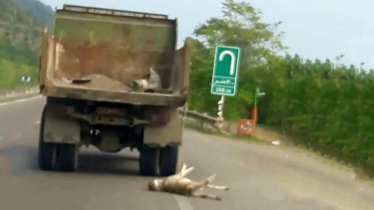کشیدن سگ روی جاده با کامیون اداره راهداری گیلان + فیلم وحشتناک و عکس