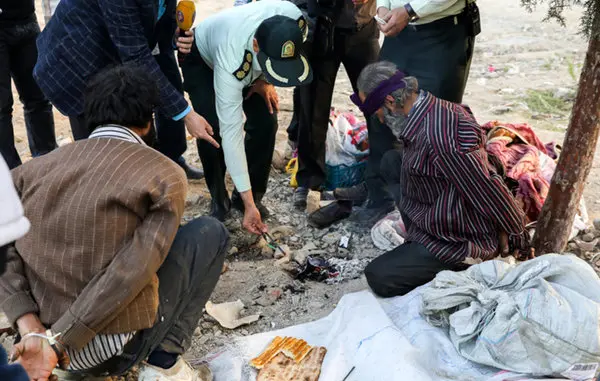 تصاویر نامتعارف از مصرف شیشه حین دستگیری در حضور پلیس تهران!