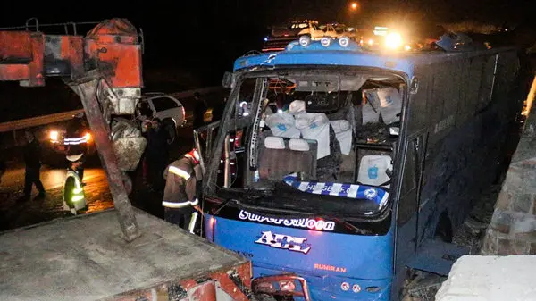 پزشکی قانونی مازندران تعداد اجساد واژگونی اتوبوس را ۱۳ نفر اعلام کرد / شناسایی ۱۱ جسد تا این لحظه