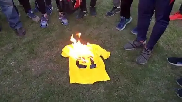 لحظه به آتش کشیدن پیراهن تیم نفت توسط یک مدیر فوتبالی+ فیلم