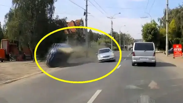 راننده یک خودروی بنز الگانس به دلیل بیاحتیاطی و توجه نکردن به خودروهای عبوری هنگام ورود به جاده، باعث واژگونی یک خودروی دیگر شد.