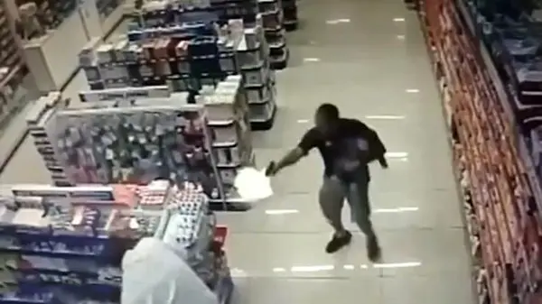 رکنا: پلیس برزیلی در حالیکه پسر کوچکش را در آغوش گرفته بود به سوی دزدان داروخانه ای شلیک کرد.
