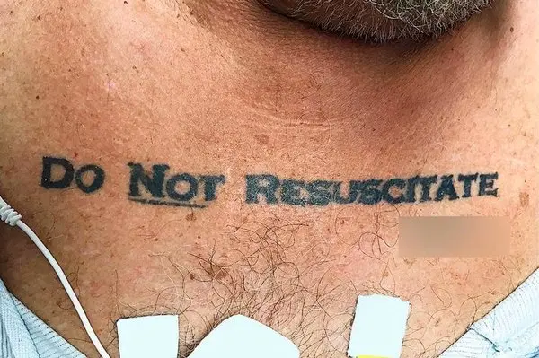 رکنا: جمله خالکوبی شده روی سینه مرد 70 ساله انگلیسی در اتاق احیا، مانع از نجاتش شد و بیمار در برابر دیدگان پزشکان جان باخت.