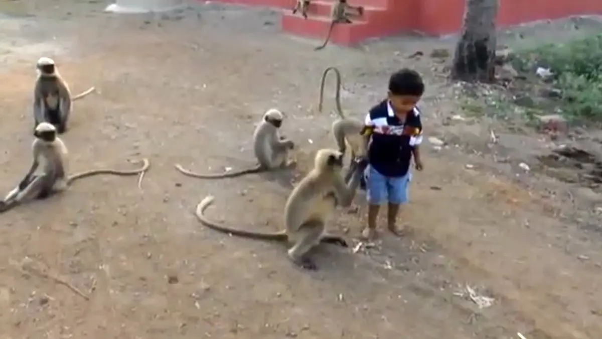 چیزی که برای مردم عجیب است، عدم حمله میمون های وحشی به این پسربچه است، زیرا در حالت عادی کسی جرئت نزدیک شدن به آنها را ندارد.