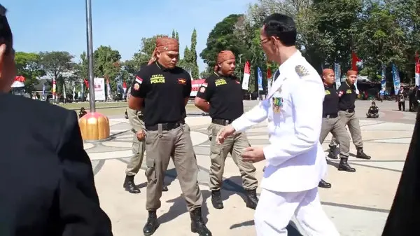 شهردار ماتارام اندونزی که به فنون رزمی تسلط کامل دارد، طی مراسمی مامورانی که به تازگی در اداره پلیس، استخدام شده اند از لحاظ قدرت بدنی مورد ازمایش قرار داد.