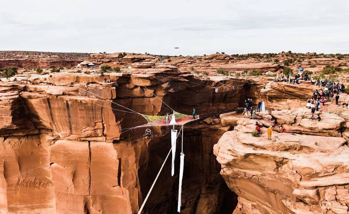 به گزارش گروه حوادث Accidents رکنا، مراسم عروسی با توجه به آداب و رسوم و عقاید هر کشوری برگزار می شود. در این بین هستند عروس و دامادهایی که دوست دارند فراتر از رسوم حرکت کنند و به گونه ای خاص عروسی بگیرند؛ عروس و دامادی به نام های رایان جنکس و کیمبرلی وگیلین تصمیم گرفتند در اقدام تازه ای عروسیشان را روی شبکه ای محکم از طناب و الیاف که در دره ی موب ایجاد شده است و با سطح زمین 120 متر فاصله دارد برگزار کنند.