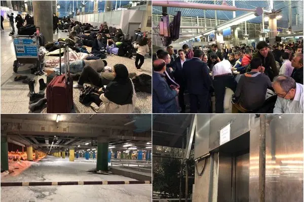 پروازها لغو میشد اما مسافران فرودگاه را ترک نمیکردند