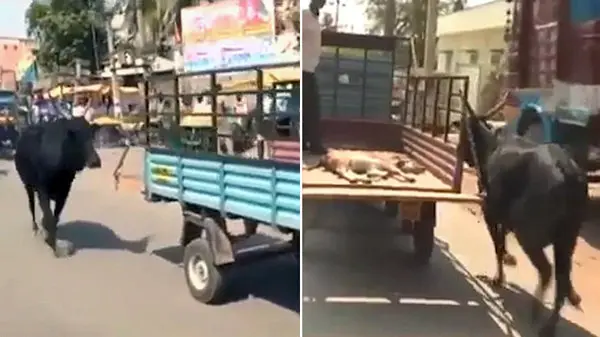 ویدئویی که به تازگی منتشر شده است عکس العمل جالب یک گاو را پس از زخمی شدن گوسالهاش به تصویر میکشد. این ویدئو که در منطقه کارناتاکای شمالی هندوستان تهیه شده است نشان می دهد این گاو به دنبال وسیله ای که گوساله اش را حمل می کند می دود.