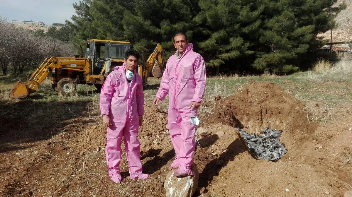 مرگ مرموز 5 هزار کبوتر در اسلام آباد غرب + عکس دفن لاشه ها با لباس مخصوص
