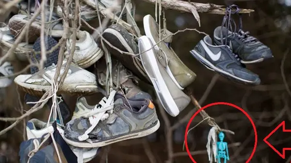 عکاسی به نام "پتی مایر"در سفر خود به کانادا وارد جنگلی در منطقه اورنجویل شد و با صحنه ای عجیب و مرموز مواجه شد. تعداد بسیاری کفش از شاخه های درختان آویزان شده و برخی از آنها نیز به تنه درختها چسبیده بود در حالی که هیچ توضیحی برای آن وجود نداشت. وجود اسکلت های کوچک پلاستیکی در کنار کفش ها نیز این موضوع را عجیب و ترسناک تر کرده بود.