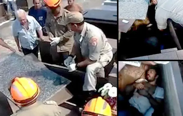 یک آتش‌نشان می‌گوید: این مرد برزیلی زخم‌های متعددی برداشته که در بیمارستان بستری شده است.