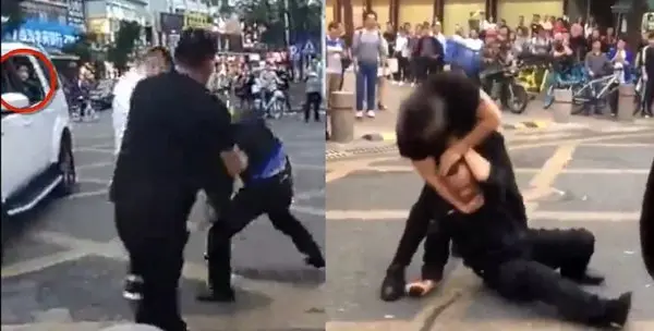 در حالی که مرد راننده سرگرم ضرب و شتم پلیس بود صدای گریه فرزند او از داخل ماشین می آمد که در همان حال از پدرش درخواست می کرد که از کتک زدن مامور پلیس دست بردارد. تعدادی نیز در اطراف آنها جمع شدند اما کسی نتوانست این دو را از یکدیگر جدا کند. بنا به گزارش رسانه های محلی چین این درگیری زمانی رخ داد که مامور پلیس مانع پارک خودرو در قسمت پیاده رو شده بود.