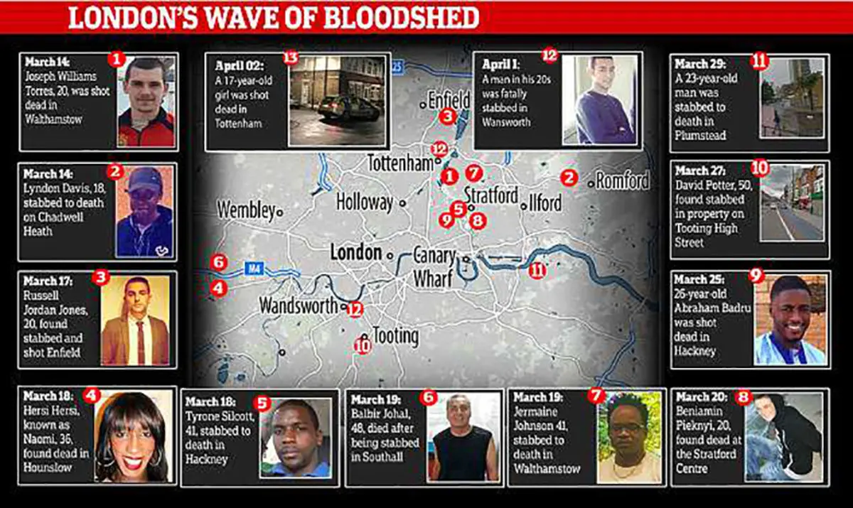 این حوادث در حالی روی داده که رسانههای انگلیس گزارش دادند در ماه فوریه 15 تن در لندن در مقابل 14 نفر در نیویورک براثر حمله با چاقو جان باختند و این در حالی است که هر دو شهر به لحاظ جمعیتی یکسان هستند.