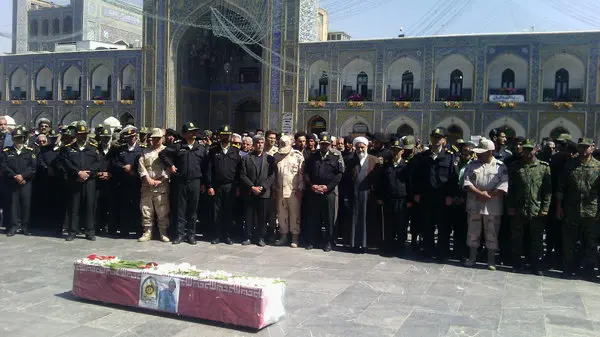 حوادث رکنا: پیکر شهید سرباز پیمان کیوانی صبح امروز در حرم امام رضا (ع) با حضور مردم و فرماندهان نیروی انتظامی تشیع شد.