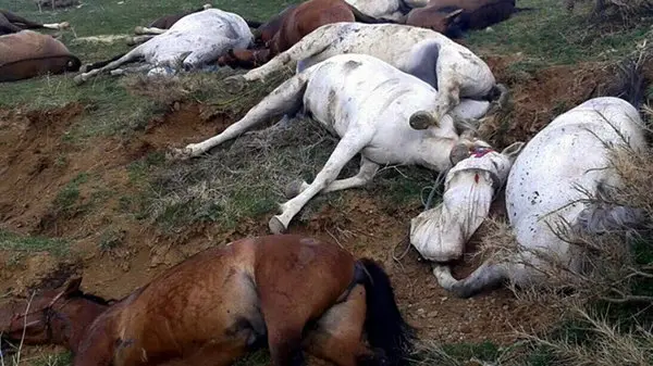 قتل عام بی رحمانه 90 اسب کولبران در اشنویه + عکس