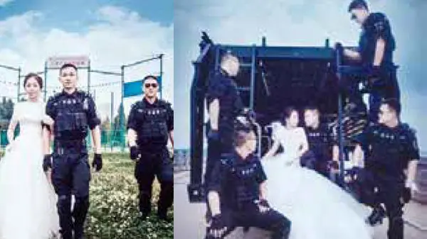 عروس خانم که خودش عکاس حرفه‌ای است از شوهرش خواست تا با همان لباس نظامی مراسم ازدواجشان را برگزار کنند.در واقع عروس چینی با یک ایده خلاقانه به محل کار نامزدش که در حال انجام تمرینات سخت پلیسی بوده رفت و دوستان وی عکس‌های زیبا وجذابی از این مراسم گرفتند.