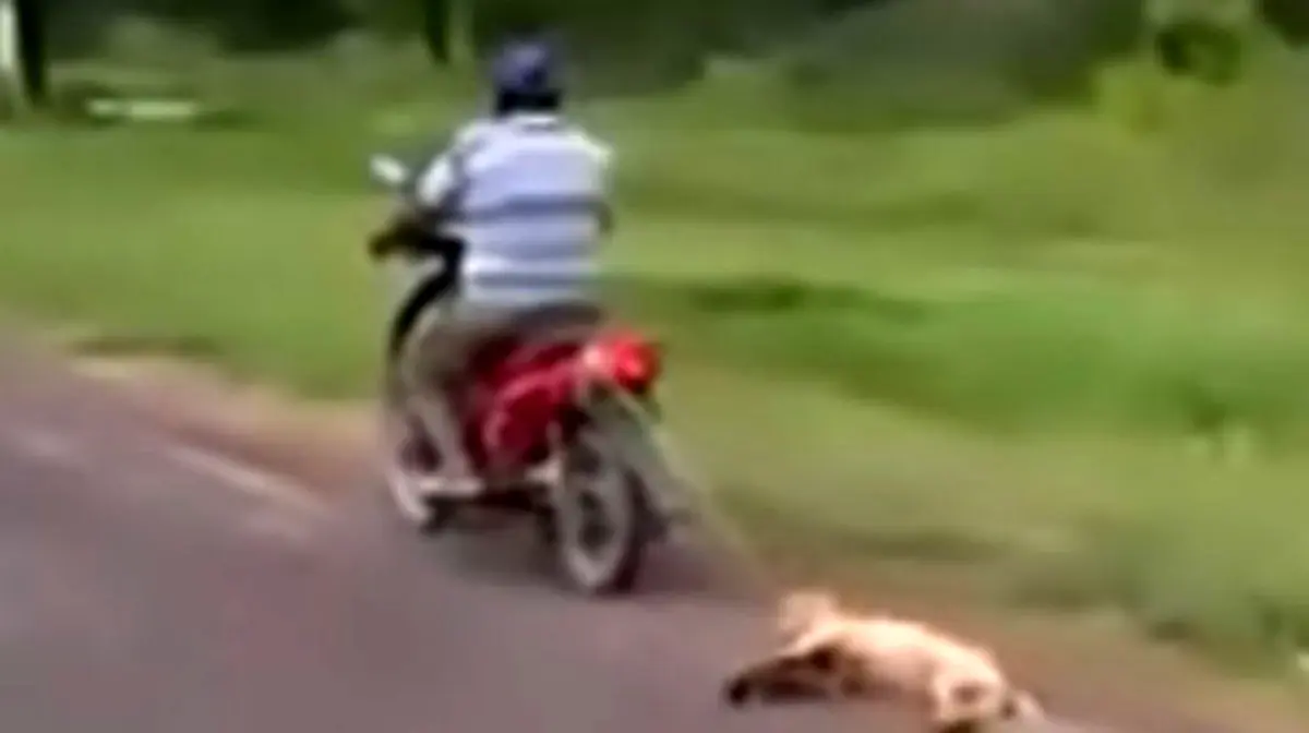 تنبیه وحشتناک یک سگ توسط مرد موتورسوار +عکس