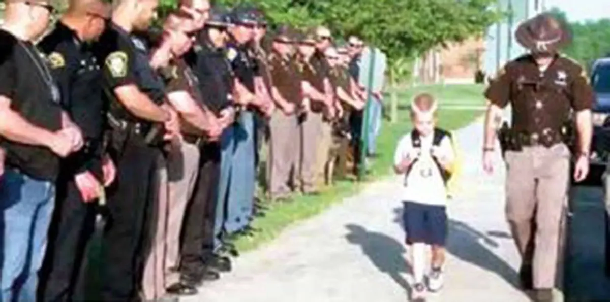 70 پلیس پسر 5 ساله را تا مدرسه اسکورت کردند+ عکس