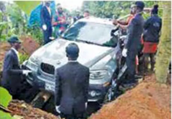 حوادث رکنا: پسر نیجریهای که به پدرش قول داده بود برایش یک «بیامو» بخرد وقتی خودرو را خرید که دیگر دیر شده بود و پدرش فوت کرد.این پسر برای وفای به قولش خودروی مورد نظر را خرید و جسد پدرش را درون خودروی «بیام و» به خاک سپرد.
