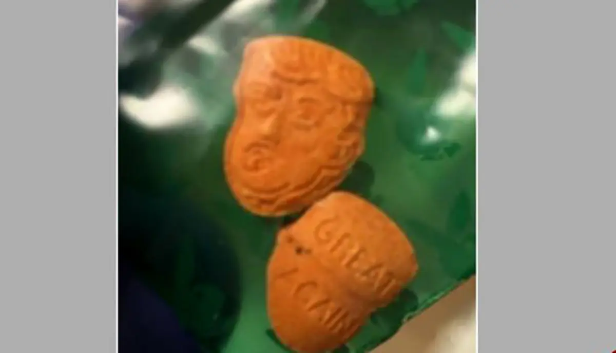 نیروهای پلیس در یک یورش شش روزه 129 مجرم را به اتهام حمل مواد مخدر بازداشت کردند. در خانه یکی از این مجرمان، قرصهای اکس نارنجی رنگ با تصویر ترامپ Trump به همراه قرصهای کوکائین، هروئین و ماریجوآنا کشف شد. در پشت این قرصها هم قسمتی از شعار انتخاباتی دونالد ترامپ که گفته بود «آمریکا را دوباره قدرتمند کن» حک شده است.