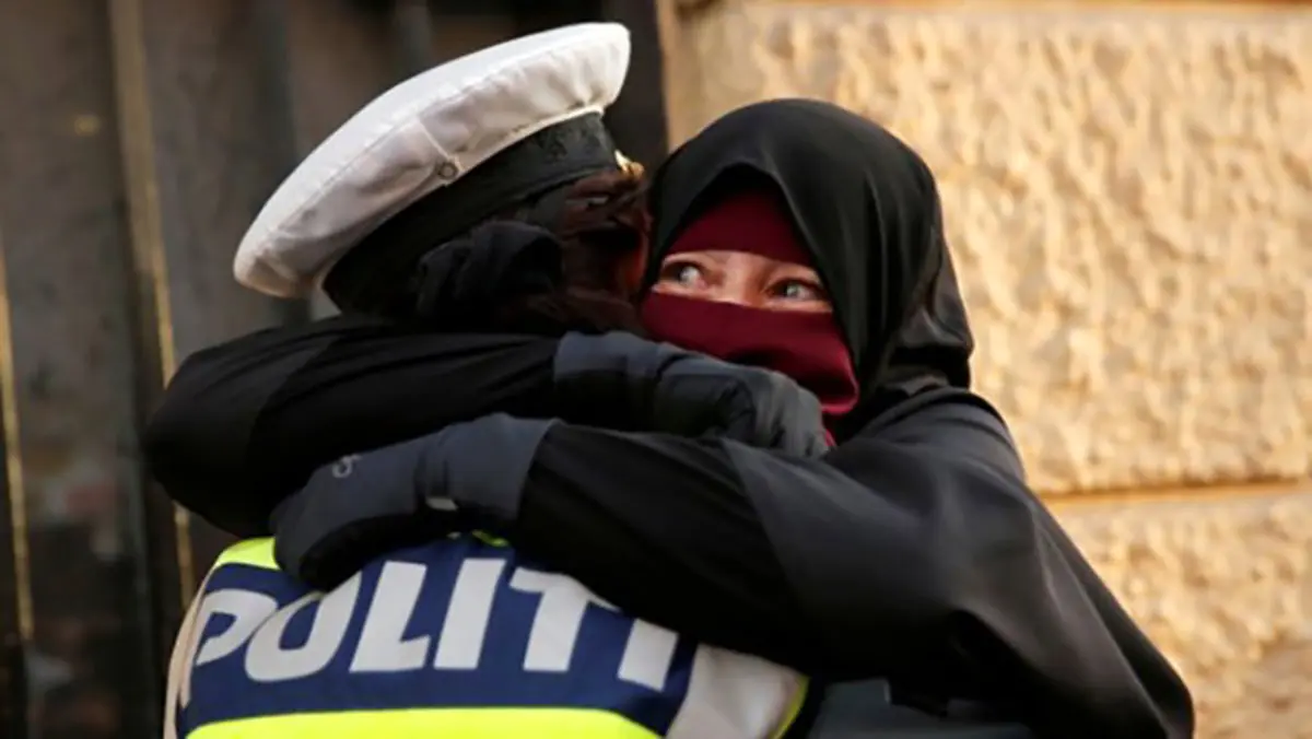 این صحنه توسط عکاسان مطرح شبکه خبری رویترز ضبط و عکس آن در شبکه های مجازی منتشر شد. تصویر در آغوش کشیدن این دو زن در پوشش متفاوت محبوب ترین تصویر روزنامه های کشور دانمارک در هفته جاری شد. کاربران نیز با دیدن این عکس احساسی شدند و کشور دانمارک را به نقض حقوق زنان در انتخاب پوشش متهم کردند.