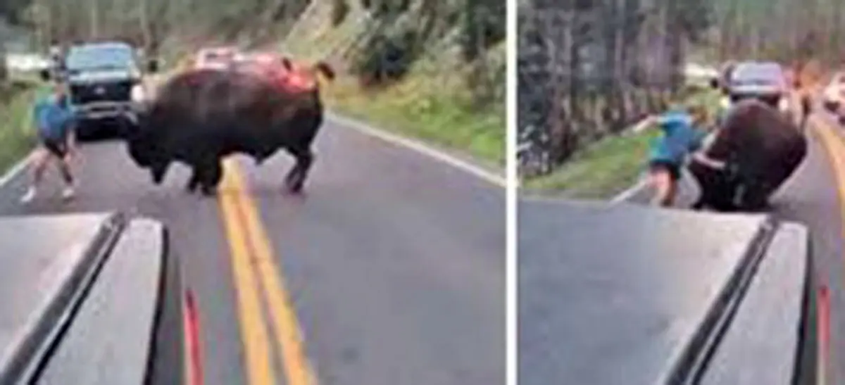 حوادث رکنا: مرد امریکایی برای تفریح یک گاومیش وحشی را در جاده مقابل چشم گردشگران آزار داد اما پس از دستگیری در برابر دوربین از حیوان آزار دیده عذرخواهی کرد.