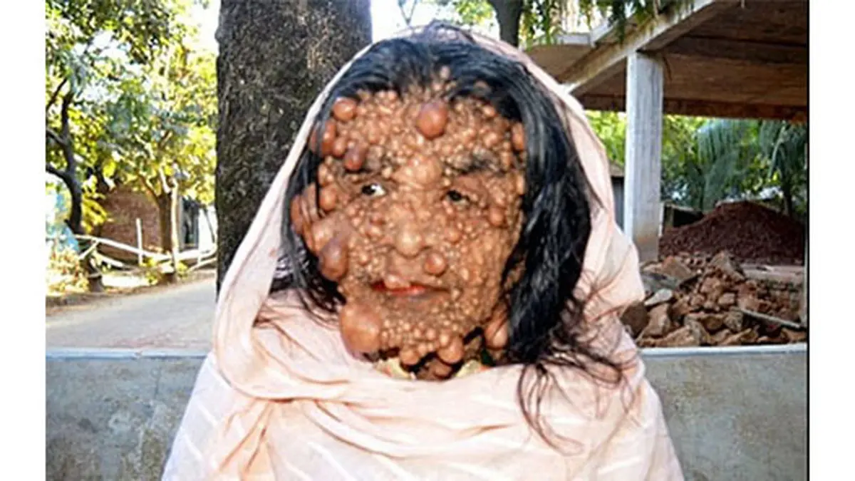 پیرزن بنگلادشی که Hosineara Begum نام دارد، دارای برآمدگیهای کوچکی در سراسر بدنش است؛ البته در زمان تولد او، این برآمدگیها وجود داشتند ولی همه تصور میکردند برآمدگیهای صورت او جوش هستند و مسئله نگرانکنندهای وجود ندارد.