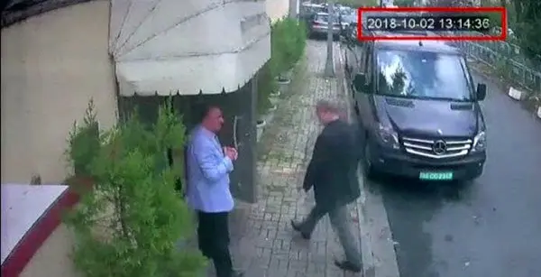 این تصویر که از یک دوربین مداربسته به دست آمده است خاشقجی را در حالی نشان میدهد که وارد کنسولگری عربستان در استانبول میشود.