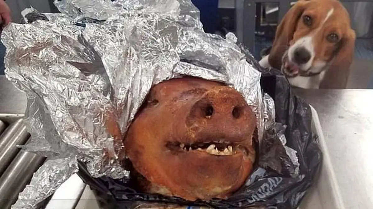 به گفته مامورپلیس، بوی خوش کبابی که در فضای فرودگاه پیچیده بود همه افراد حاضر در فرودگاه را مست و گرسنه کرده بود اما هیچ کس نمی دانست که در تعدادی چمدان خوک های سوخاری شده وجود دارد.