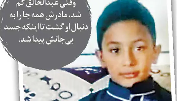 عصر چهارشنبه تا ظهر پنجشنبه مادر عبدالخالق لحظات جانکاهی را گذراند. او گوش به زنگ رسیدن خبری از پسرش بود تا اینکه ظهر پنجشنبه خبر رسید که پیکر بیجان پسربچه کنار یک زمین کشاورزی در حوالی قلعهکنعان کشف شده است. ماجرا از این قرار بود که یک راننده کامیون هنگام عبور از جاده کمربندی راننده پرایدی را هنگام انداختن جنازه کنار زمین کشاورزی دیده بود. او دقایقی بعد خودش را به صاحب زمین که مشغول بذرپاشی بود، رسانده و با هم کنار جنازه رفته بودند.