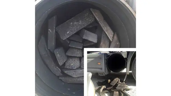 براساس این گزارش، 454 کیلو گرم شمش مس به طرز ماهرانه ای در قسمت منبع اگزوز کامیون جاسازی شده بود.