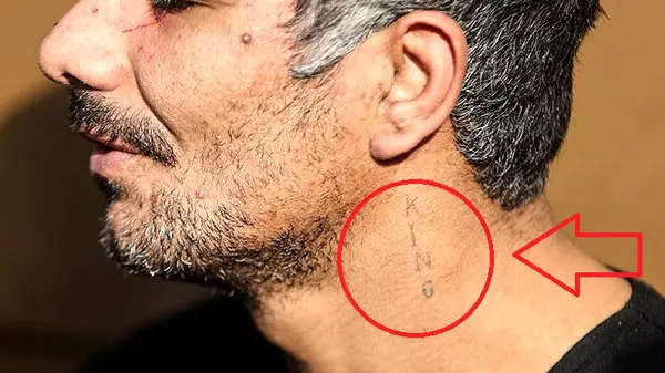 حوادث رکنا: عکسی از خالکوبی روی گردن سارق شیطان صفت را مشاهده میکنید.